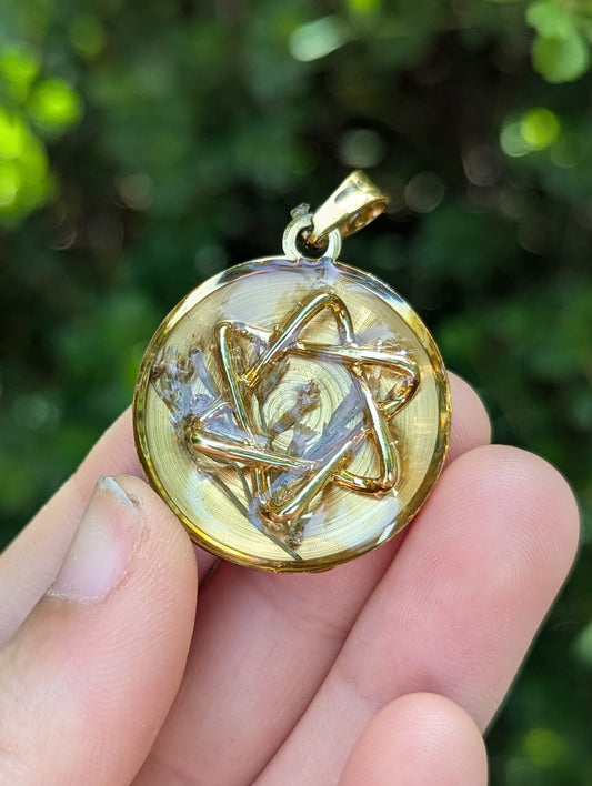 Dad's Micro Painting of Kandinsky Blue Rider Magen David Pendant (commissioned)