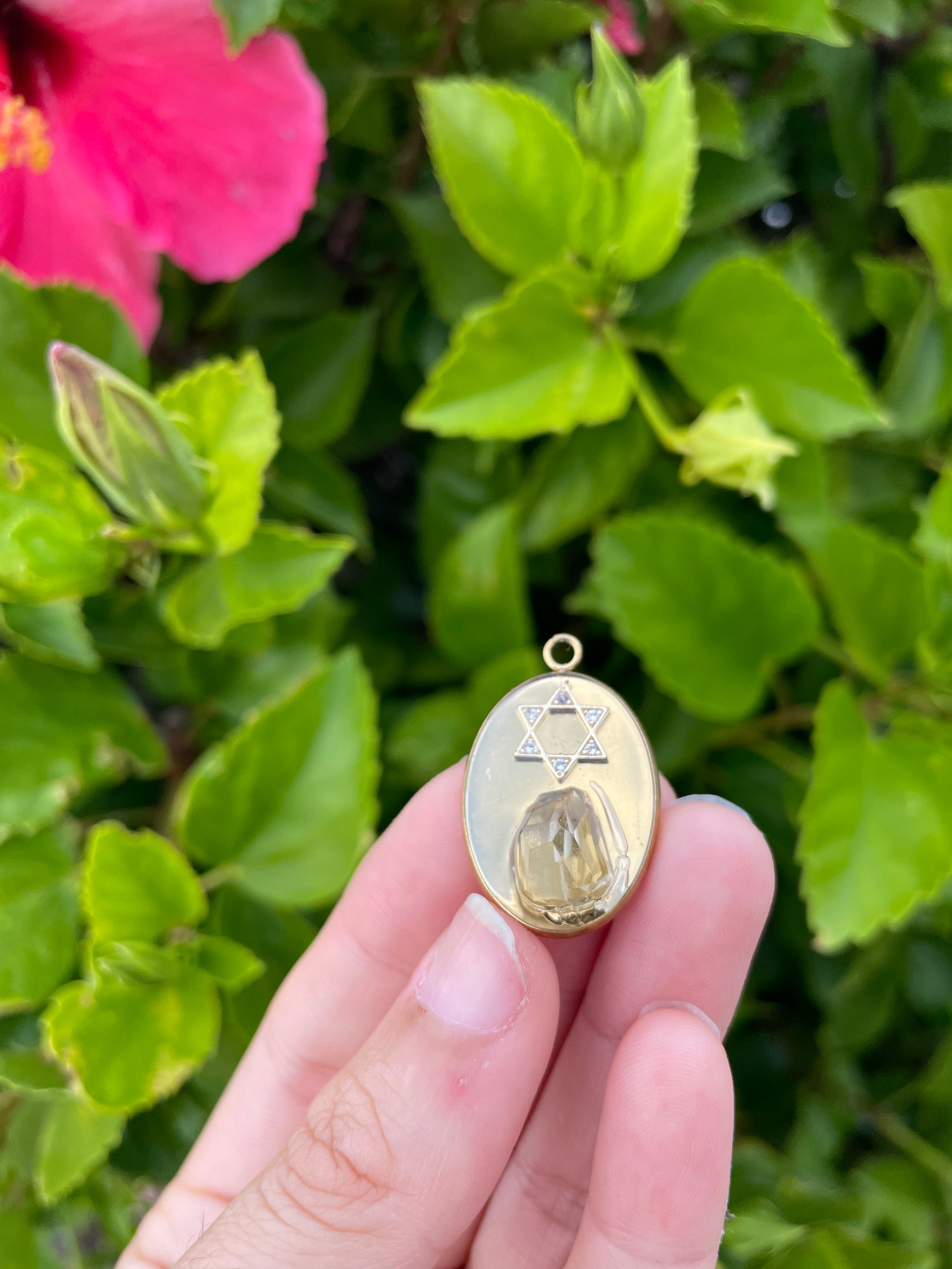Green Amethyst Gold Plated Magen David Zirconia Pendant