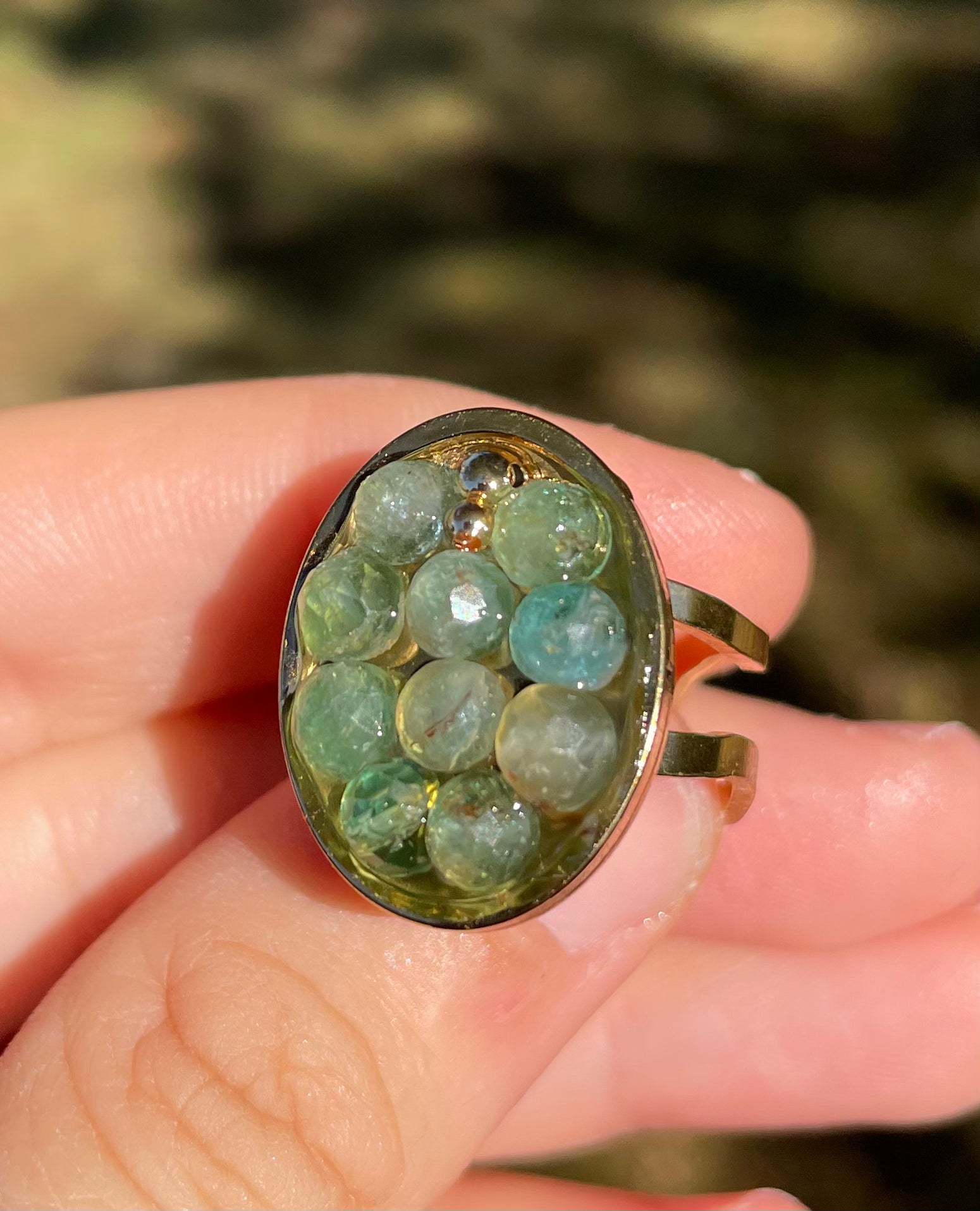 Kyanite Gemstones Resin Gold Plated Stainless Adjustable Ring
