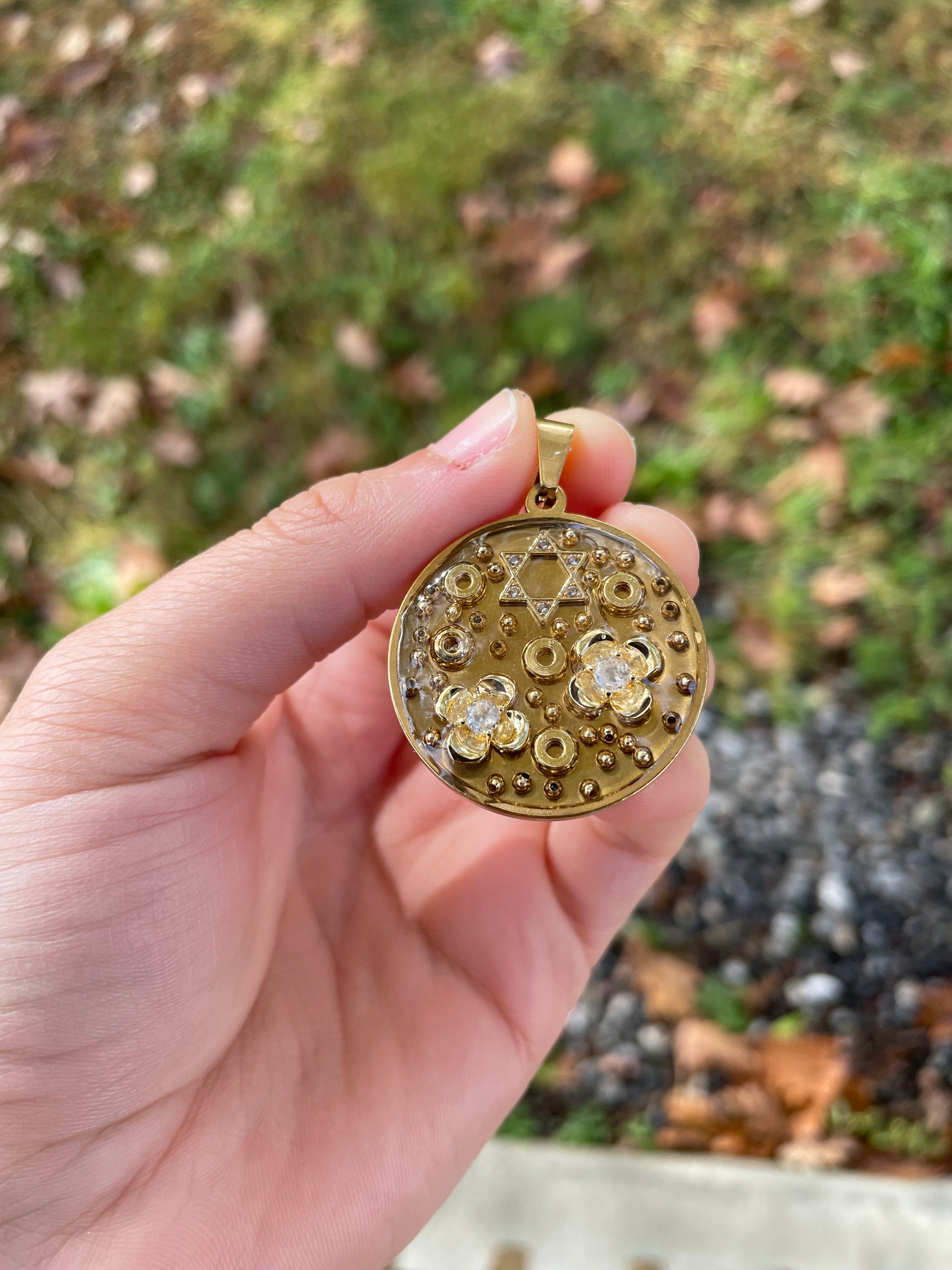 Round Gold In Bloom Magen David Pendant with Golden Beads and Flower Charms