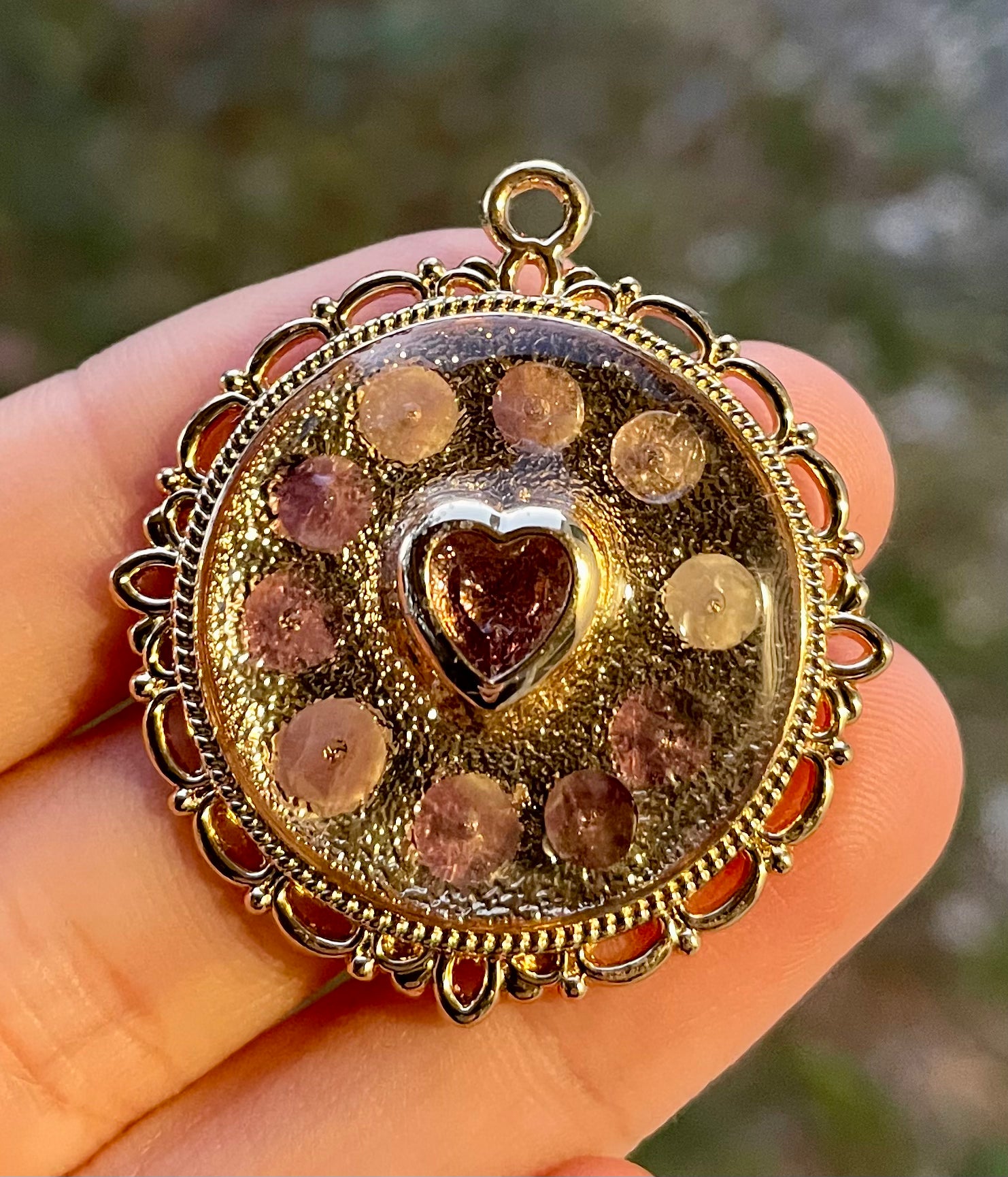 Zirconia Purple Heart and Amethyst Purple Gemstones in Gold Plated Decorated Pendant